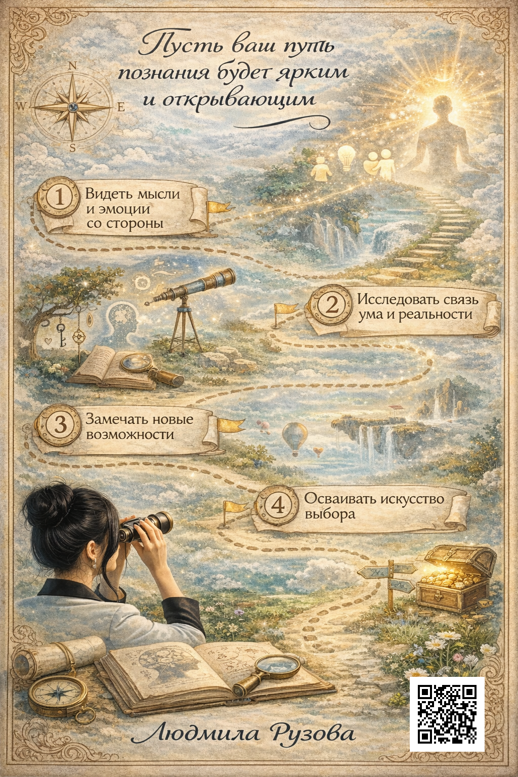 Вы научитесь замечать момент, когда ум начинает прокручивать старые сценарии, и мягко останавливать этот поток.